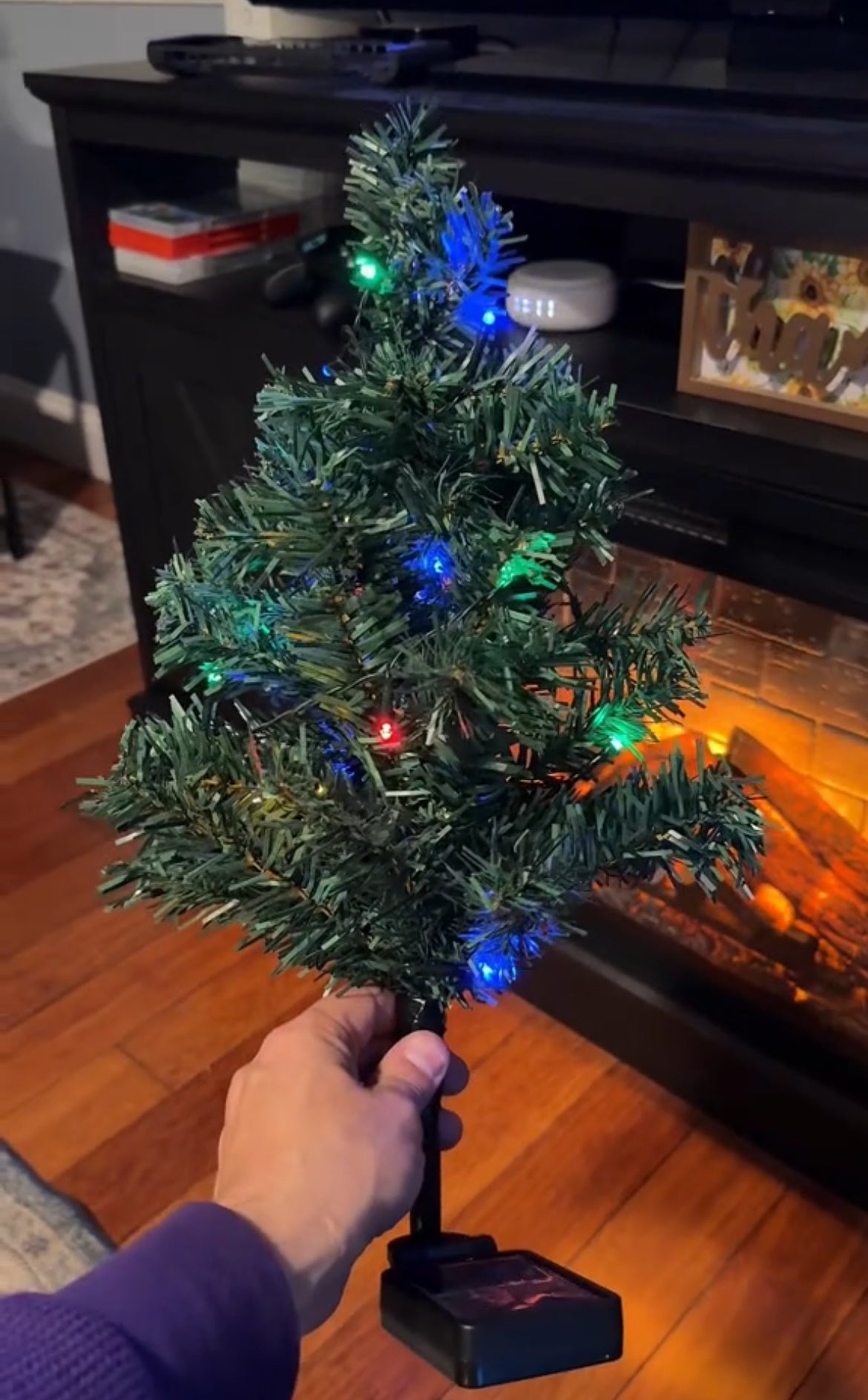 Absolutely love this little solar Christmas tree — it lights up my garden every night beautifully!